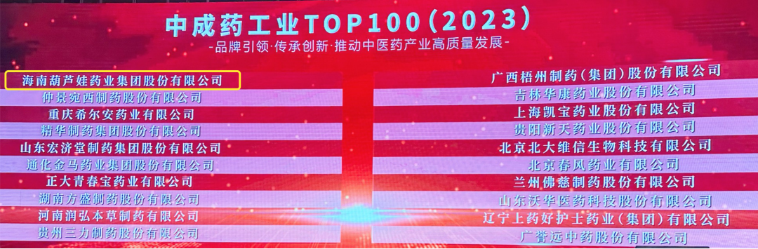 会上,还发布了“2023中成药工业TOP100”榜单,海洋之神药业集团荣耀上榜。
